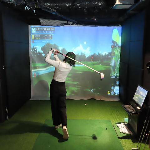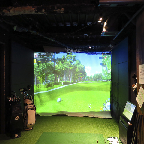 【ゴルフ初心者の方大歓迎】カメラセンサーを搭載した最新型ゴルフシミュレーターを設置しております。 みんなでワイワイお酒飲みながらお楽しみいただけます! ご希望の方にはラウンドスタート前に10分間の練習時間あり!