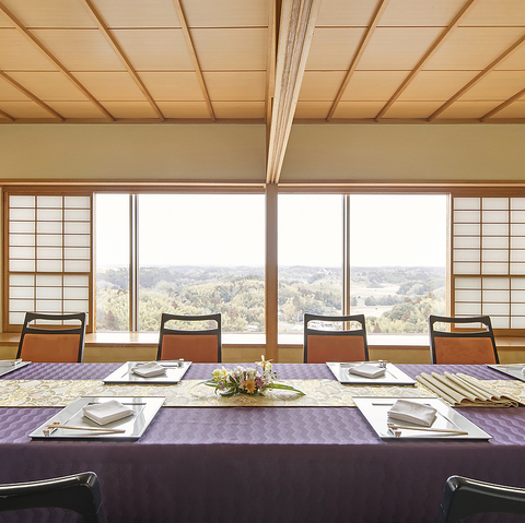 ホテルの中とは思えない落ち着いた和モダンな空間で、ゆったりとお食事をお楽しみいただけます。大きな窓からは、四季折々の景色が楽しめ、穏やかな時間が流れる中で心地よいひとときをお過ごしいただけます。大切な時間を彩る、和の美と現代的なデザインが融合した空間でのひとときをご堪能ください。