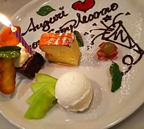 誕生日などの 記念日 には、メッセージ付きデザートプレート