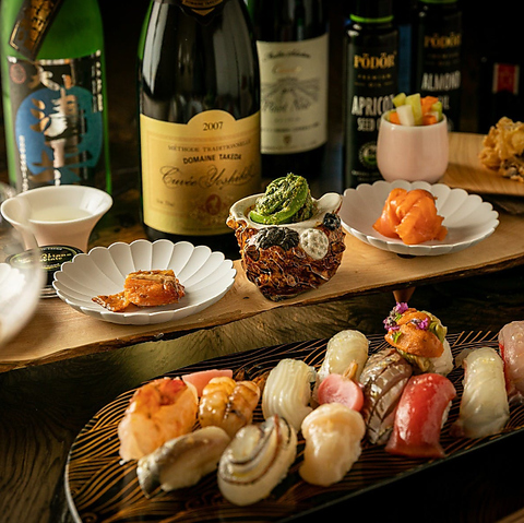 世界的シェフの奥田のおすすめコース。織音寿しの理論とオイル寿しを堪能できるスタンダードなフルコースとなります。世界各地のオリーブオイルと色々な種類のフレーバーオイルで楽しむ新領域「オイル寿司」をお愉しみ下さいませ。