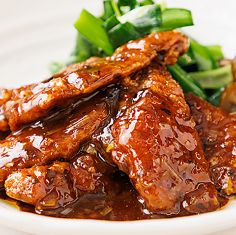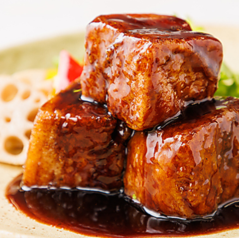 長時間炊き手間ひまかけた肉汁あふれる豚バラ肉を、カリッと揚げた酢豚。黒酢とブドウの香り高いタレが絶妙で、甘味と酸味がさっぱりとした味わいを引き立てます。