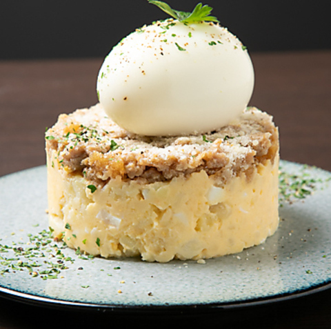 【至福のポテサラ】当店限定の至福のポテサラは注文必須★鶏そぼろにとろとろゆで卵の男らしいポテサラ♪