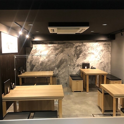 木の温もりを感じる明るいテーブルは、広々とした造りでゆったりとお過ごしいただけます。落ち着いた色合いのモダンな空間で、ご友人やご家族とのお食事、各種宴会にも最適です。落ち着いたモダンな空間で馬肉をお召し上がりください。
