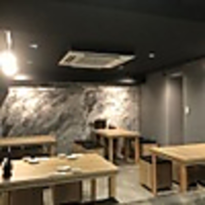 黒を基調としたシックな空間に、グレーのマーブル模様の壁紙がアクセントとなり、モダンで洗練された雰囲気を演出。落ち着いた照明も相まって、上質な大人の隠れ家のような空間です。デートや大切な接待にもご利用いただけます。