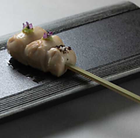 兵庫県が誇る地鶏【播州百日どり】をメインに使用する焼き鳥をご提供しております。ジューシーで脂の旨味が際立つ自慢の串焼きを、自家製タレや厳選塩でお楽しみいただけます。まずは「おまかせ」をご注文いただき、その後はお好みの串をお召し上がりください◎手作りのペッパーペーストで、当店ならではの味わいもお試しいただけます。