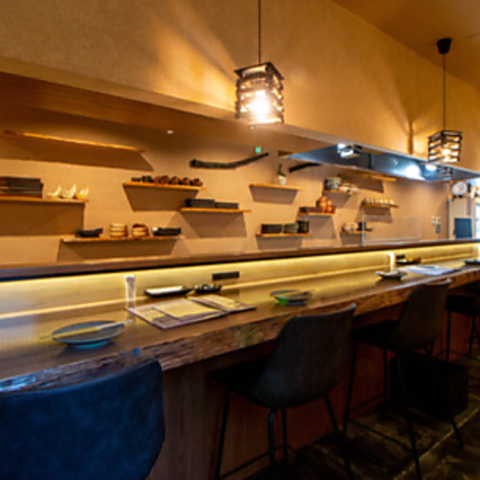 美味しい料理を提供すると共に、ゆったりとお寛ぎいただけるよう、空間づくりにもこだわっております。一枚板のカウンター席では、調理の様子を楽しみながらお食事していただけます。接待等ではプライベート感覚でお食事できる個室を。旬の料理と旨い酒、素敵な時間をご堪能ください。
