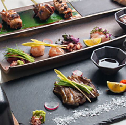 鮮度抜群の阿波尾鶏や播州赤鶏をメインに、こだわりの焼鳥や鶏料理をお召し上がりいただけます。焼きに使用しているのは最高級紀州備長炭。高い火力で鶏の旨味を閉じ込めて提供しております。