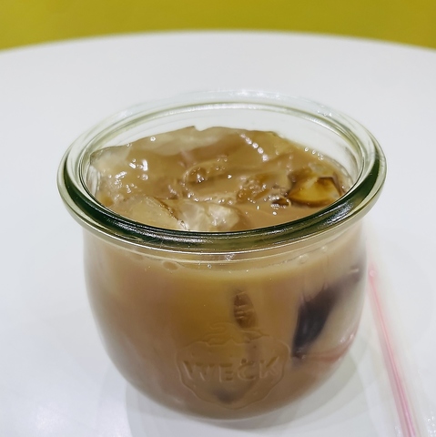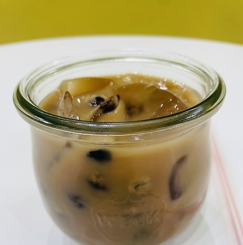 アイスコーヒーに大きなアイスをのせたドリンクです。クレープやアサイーボウルと一緒に頼むと50円引きです。