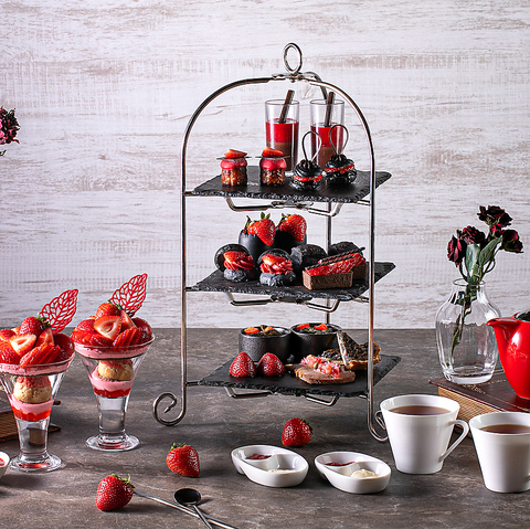ストロベリーアフタヌーンティー 第1弾は、艶やかな“黒”とときめく“赤”がテーマ。