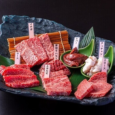 ⇒間違い無い、当店のスーパーセレクト!上カルビ・上ロース・ロース・イチボ・厚切りハラミ・てっちゃん・レバー/2~3名様用