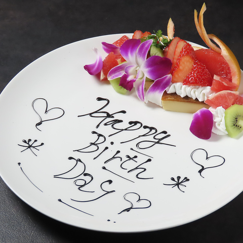 「一生の思い出に残る、素敵な1日をSOUSAKU28で。」大切な方との特別な時間を華やかに彩る「特製デザートプレート」をご用意いたします。落ち着いた和の空間で、主役の方の笑顔がこぼれる瞬間を、スタッフ一同全力でお手伝いさせていただきます。プレートの内容やメッセージのご相談など、お気軽にお問い合わせください。