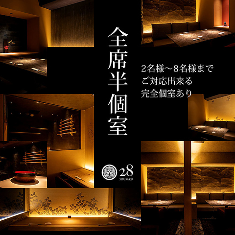 当店は全席半個室になっております。最大8名様までご対応可能な完全個室もご用意してます。(要予約)