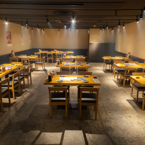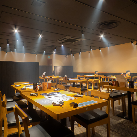 【1F】駅近なのでふらっと立ち寄れて、落ち着いた空間でお食事を味わえます!少人数から団体様まで気兼ねなくご利用いただけるプライベート個室、大人数でもゆったり寛げます。各種宴会におすすめです!