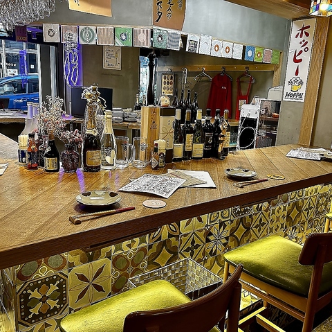 外観との印象とは異なる落ち着いた雰囲気な店内!ライトや装飾、こだわり詰まった空間はココロオドルこと間違いなし◎おひとりさまやスタッフとの会話を楽しみたいにはカウンター席がおすすめ♪女子会やデート、宴会にもご利用ください!