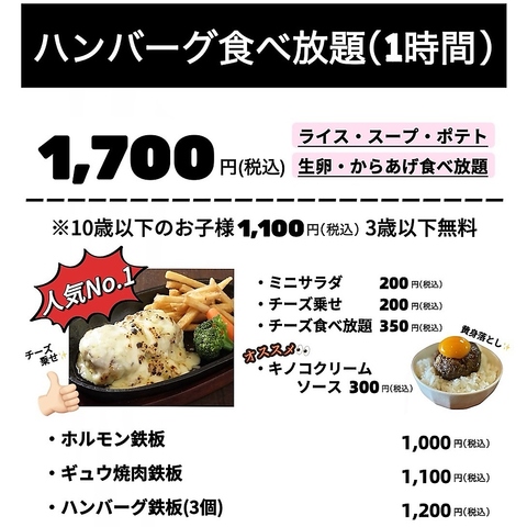 | 食べ放題 | あり :ランチハンバーグ食べ放題★ |