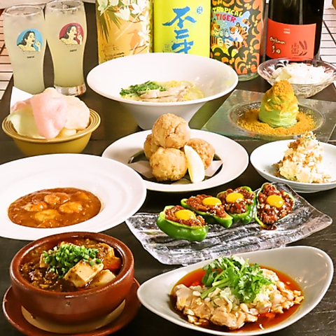 よだれ鶏、唐墨春雨、仔羊麻婆豆腐、鶏の唐揚げ 、〆鶏白湯煮込そば!人気メニューが勢ぞろいお得コース!