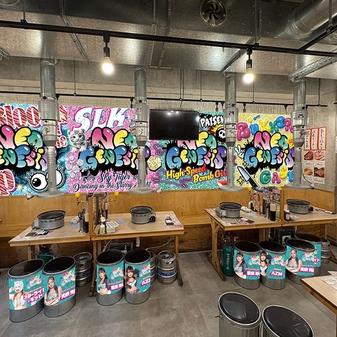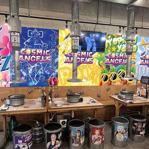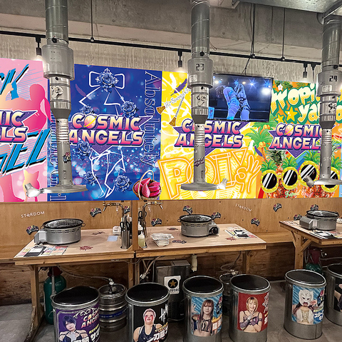 卓上やイスもスターダム仕様に大変身!等身大パネルも登場で、気分も大盛り上がり♪