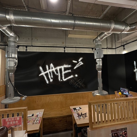 wing★gori特設ブースには飯田沙耶選手の等身大パネル、さらに極悪軍団「H.A.T.E.(ヘイト)」ブースの黒幕には、第36代 ゴッデス・オブ・スターダムチャンピオンの刀羅ナツコ選手、琉悪夏選手の直筆ユニットロゴ&サインが!