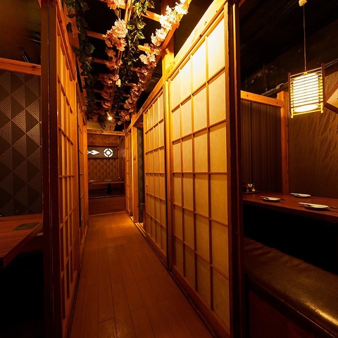 飲み放題メニューも充実の取り揃え!焼酎、サワー、カクテル、ウイスキーetc...厳選したお酒の数々は全70種類以上♪お時間を忘れてじっくりとお楽しみ下さい!飲み放題付プラン4000円よりご用意しております!広々とした完全個室席はちょっとした飲み会や接待、合コンや同窓会など各種宴会で大活躍♪