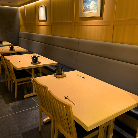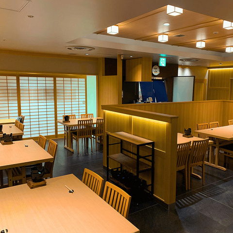 和モダンで落ち着いた雰囲気の店内。落ち着いた空間で、ゆっくりとお食事をお楽しみいただけます。15名以上で貸切宴会も受け付けておりますので、ご相談下さい。