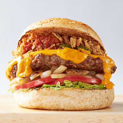 濃厚なコクと香りの「エバーチーズ」※1)を使用した特製チーズソースが食欲を刺激する、思わずかぶりつきたくなるハンバーガー。国産小麦と全粒粉を使用したふんわりバンズに、スパイシーな香りが食欲をそそるジューシーな植物由来のオリジナルパティとたっぷりの野菜をサンド。程よい酸味と具材感が楽しめる特製トマトソースが、パティを引き立てる食べ応え抜群のハンバーガーです。※1)乳製品ではありません
