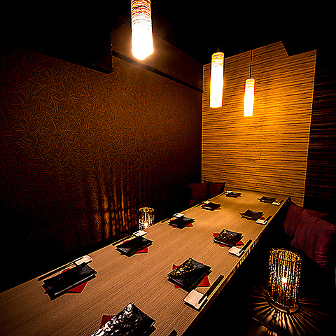 お客様だけの完全プライベート空間で周りを気にせずお楽しみいただけます!和の装飾の数々と間接照明がお客様の宴に華を添えます♪心地良い空間と雰囲気に包まれて,各種お酒をお楽しみ下さい♪飲み放題付コース多数ご用意しております。ご宴会や飲み会,接待,合コン,女子会,貸切などの宴会に最適◎