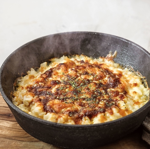 カマンベールチーズ、チェダーチーズ、ラクレットチーズ、ゴーダーチーズ、ゴルゴンゾーラの5種類のチーズを贅沢にトッピング!チーズの旨味が凝縮されたプレミアムドリアです。