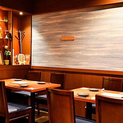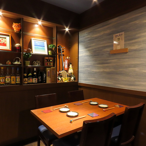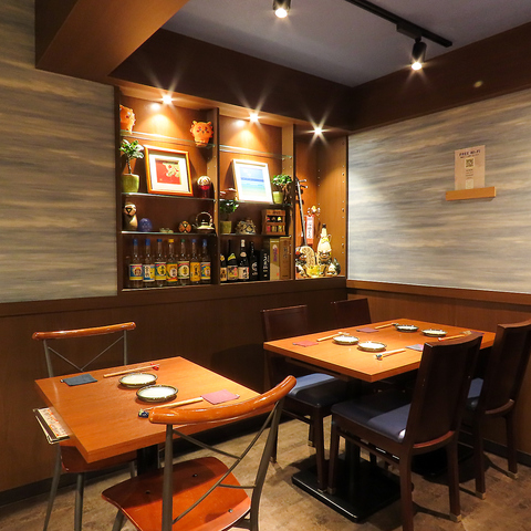 贅沢なシックモダンの内装が広がる当店は、静かな空間でゆったりとお過ごしいただけます。接待や会食、貸切利用にも最適で、格式ある雰囲気の中で沖縄料理の本格的な味わいを満喫していただけます。