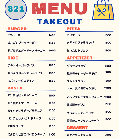 821 ハチニイチ テイクアウト 2025/12/13 更新
