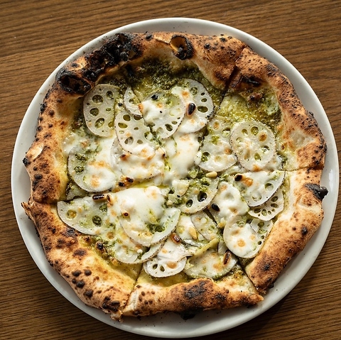 〈ジェノベーゼ・蓮根・モッツァレラ・グラナパダーノ・松の実〉