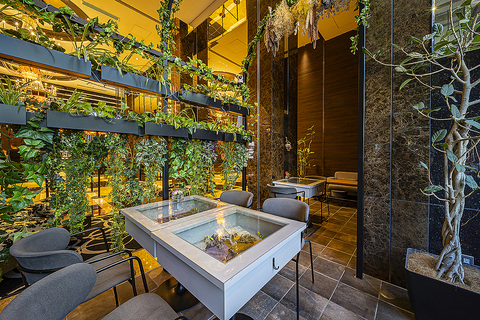 【梅田駅徒歩約5分】内観はドライフラワー・植栽などの装飾にこだわった癒しの空間となっております。日々の疲れが癒されるような落ち着いた雰囲気の店内で、モーニング・カフェタイム・ディナーなど様々なシーンでご利用ください♪