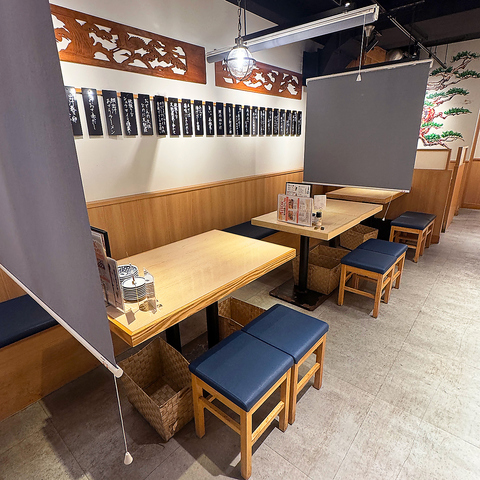 3~4名様でご利用いただけるテーブル席は明るく開放感のある杉玉らしいお席です。※お隣の席とはパーテーションで仕切ることも可能です。