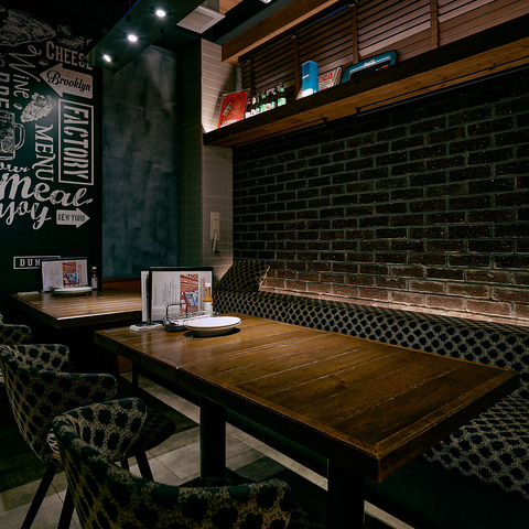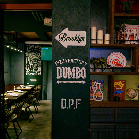 ニューヨーク、ブルックリンのピザ屋をイメージした店内は、各所にアンティーク雑貨などが置かれ、アメリカンな雰囲気でいっぱい!まるで海外旅行に来たような気分でお食事をお楽しみいただけます。カップルで、ご家族で、ご友人と楽しい時間をお過ごしください!