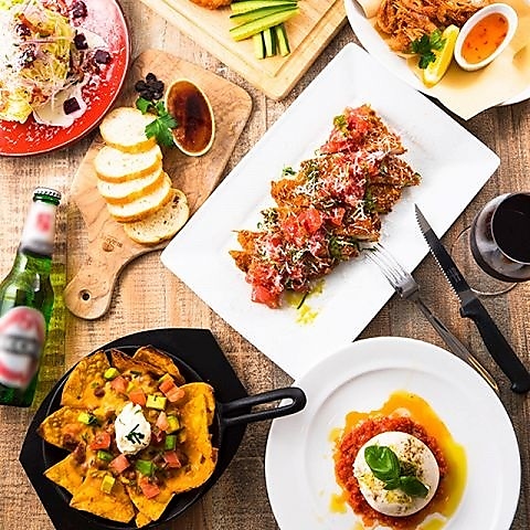 貸切パーティーにもピッタリな、飲み放題付きの各種コースをご用意しています。「アローラコース」は、種類豊富なおつまみとピッツァがセットになって、3,500円とお得なコース♪おいしいおつまみと一緒に飲みたいお客様にぴったりのコースです。しっかり食べたいお客様には、牛のタリアータが付いた「フェスタコース」がおすすめ!