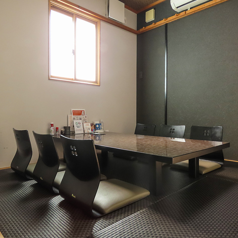 【最大9名様】までお座りいただける個室を3つ、6名様個室が1つございます。少人数でゆったり過ごしたい場合など、プライベート空間をお楽しみください。