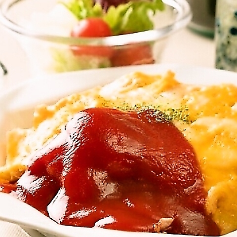 定番のケチャップライスとチーズ入の卵をのせたオムライスです!無料でご飯大盛りもできます!お子様から大人まで大人気です!