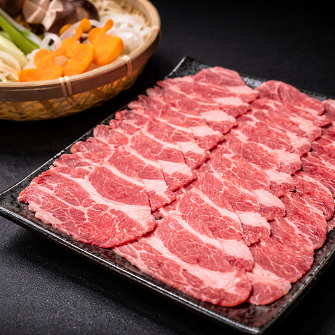 北海道の自然に育まれた交雑牛の霜降り肉を使用。きめ細かく入った脂がとろけるような食感と深いコクを生み、しゃぶしゃぶにすることで上品な旨みが際立ちます。