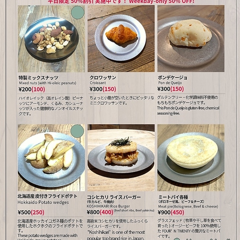 フードメニューも 平日限定全品50%割引です!
