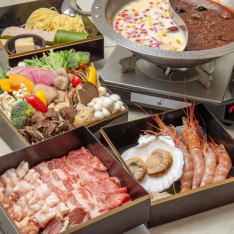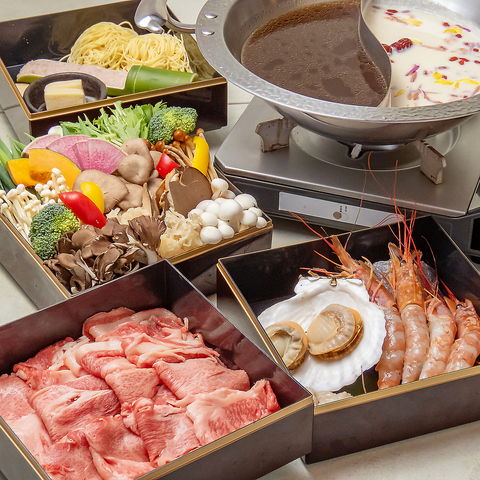 その日で一番良い特選和牛をご堪能できるコースもございます。さらに、鴨ロースやブランド豚、鶏肉といった鮮度抜群のお肉を贅沢に盛り合わせ。特製の薬膳スープにくぐらせてお召し上がりください。こちらの厳選コースは3日前までのご予約が必要です。極上の旨味と滋養が深く染みわたる、特別なひとときをご提供します♪