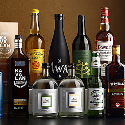 ビール、日本酒、焼酎といった居酒屋定番酒はもちろん、カクテル、ウィスキー、中国酒まで幅広くご用意♪