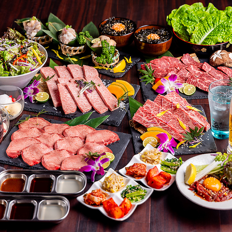 食べ放題コースが始まった。品数120品以上あります。当店の名物ドラゴンカルビやミスジステーキ、サーロインステーキなどご堪能ください