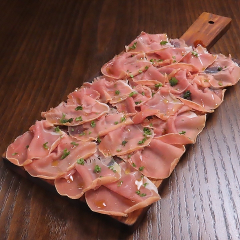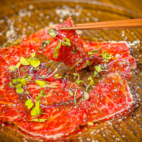 厳選された日高見牛を使用した贅沢な一品です。新鮮なお肉を、素材の旨味を引き立てる特製のドレッシングと共にお楽しみいただけます。口の中でとろけるような食感と豊かな風味が広がり、前菜としてもメインとしてもお楽しみいただけます。特別なひとときにぴったりの一皿を、ぜひご賞味ください!