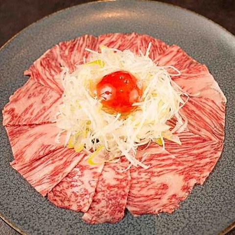 職人がこだわりぬいた当店自信、究極の「和牛ユッケ」。九州ブランド【蘭王】をのせたユッケ各種。当店自慢のワインとベストマッチ。