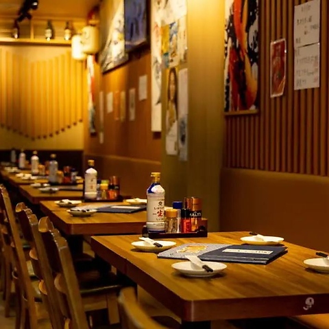 和の優しい温もりと洋風間接照明が彩る店内。接待や商談のお席はもちろん、デートや女子会等、様々なご宴会シーンにご利用いただけます。個室は少人数でのご案内可能。他のお客様を気にすることなく、お客様だけの楽しいプライベートタイムをぜひともお過ごしください。