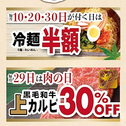 毎月お得に焼肉が楽しめるフェアを実施中!美味しいお肉や一品料理をリーズナブルに味わうチャンスです。