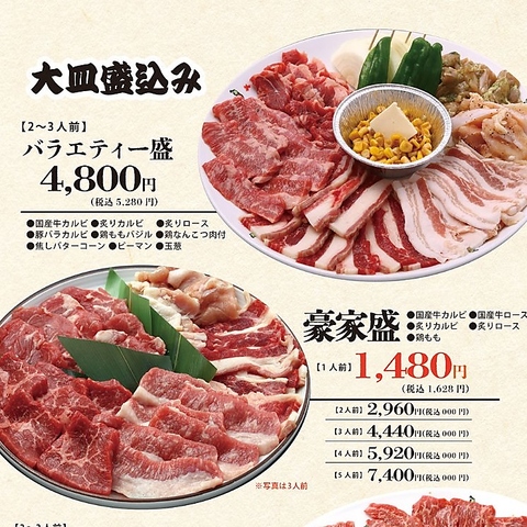 家族や友人、同僚などで楽しめる大皿セットのご用意がございます♪みんなで楽しくいろいろな種類のお肉をお楽しみいただけます♪