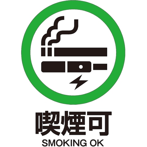 お席で飲みながら、食べながら喫煙可能♪もちろん禁煙席のご用意も◎