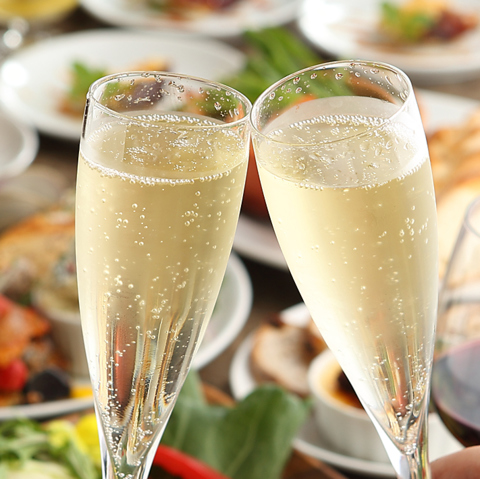 乾杯はNIONI人気のシャンパンで!またレモンサワーはなんと16種類!様々なネーミングにもこだわり♪