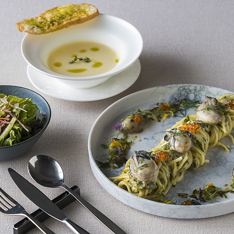 ランチやディナー時間で雰囲気が変わるので、いつご来店いただいてもお楽しみいただけます♪セットメニューは同じメニューをご提供しておりますのでランチ、ディナー関係なく、ご堪能ください◎+400円(税込)で本格的なデザートが自慢のデザートセットに変更も可能です!