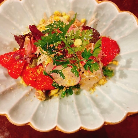色鮮やかな海鮮料理の数々は、目でも楽しめる逸品揃い。日本酒にぴったりの一品料理も多数ご用意し、馬刺しやおでんといった豊富なアラカルトメニューも魅力です。さらに、日替わりメニューで毎週変わる旬のおすすめも見逃せません!ぜひ、季節の味わいを堪能しにお越しください。